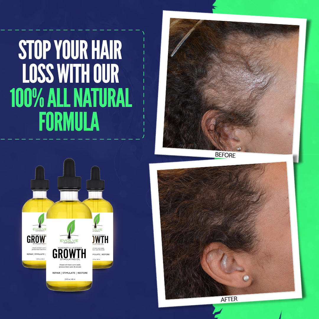 Evolve Hair Growth Oil is powered by a blend of 19 organic oils and botanicals chosen for their proven ability to support scalp health and stimulate stronger hair growth.